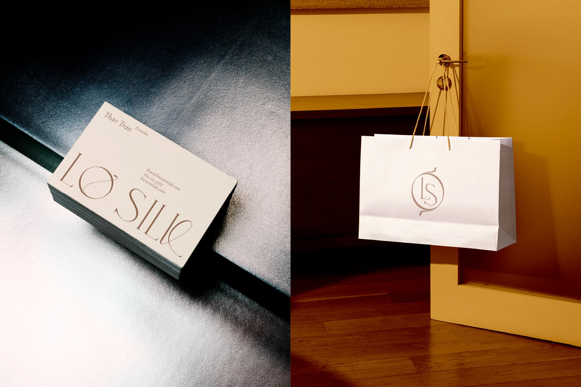 Within the design system, the logotype reflects meticulous craftsmanship—echoing the texture of fabric and the precision of each stitch—while embodying Thảo Trần’s refined aesthetic sensibility. The logomark distills geometric forms into a symbolic structure, softened by organic, free-flowing details.