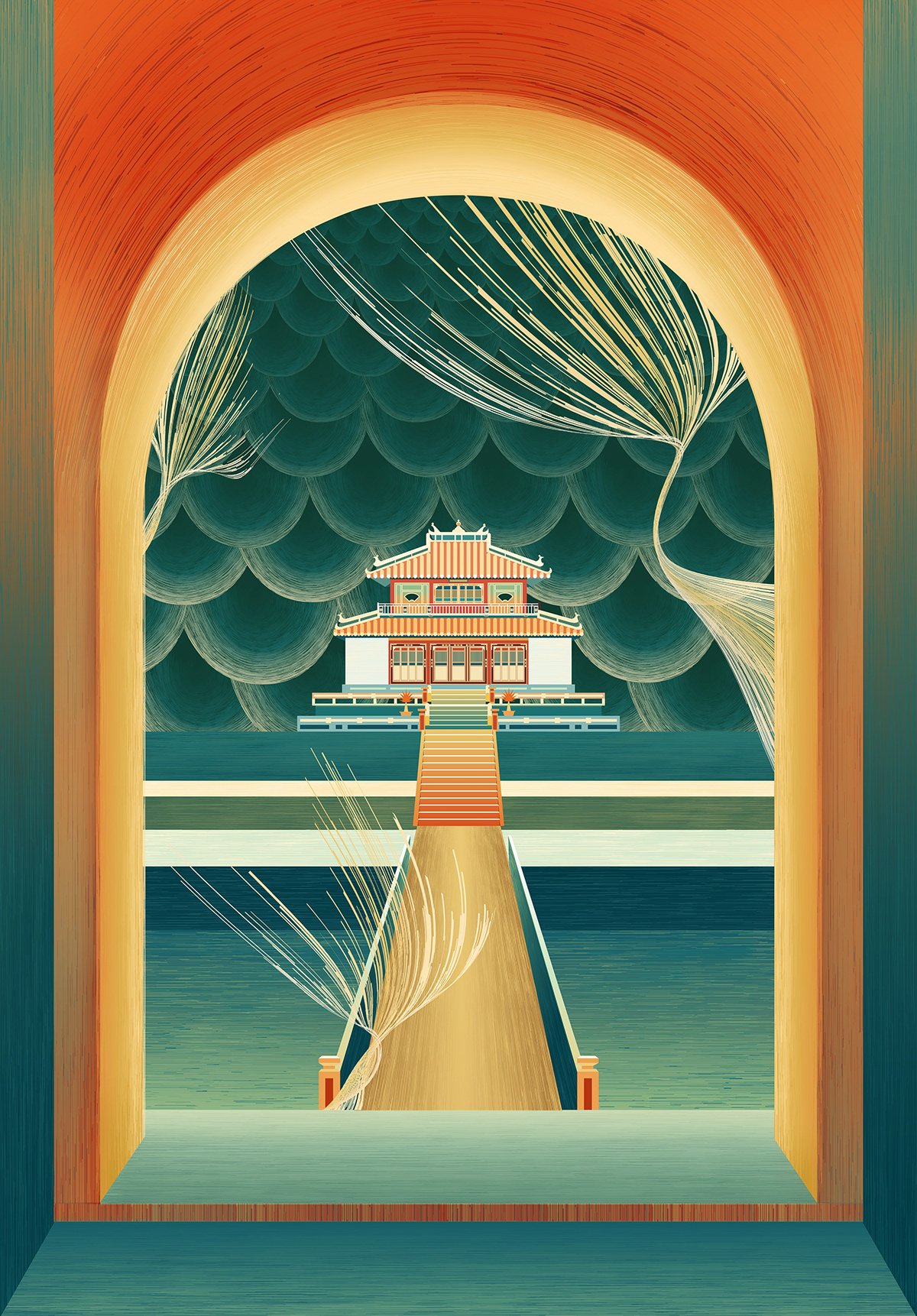 The series consists of twelve paintings inspired by Vietnam’s diverse architectural heritage. As a country with 54 ethnic groups, Vietnam is home to a wide range of cultural identities, many of which are strongly reflected in architectural forms.